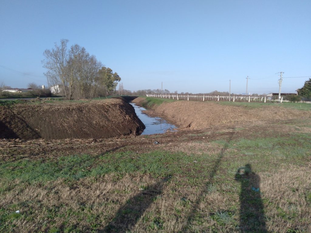 Continuano i lavori di trinciatura, riescavo e ripristino corpo arginale sul fosso Bottagone in località Borgo Flora – Comune di Cisterna di Latina.