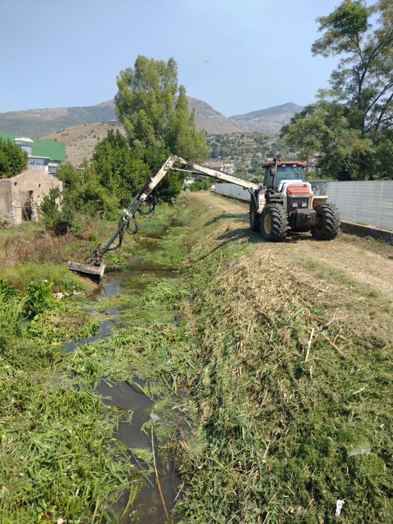 Eseguita l’attività di trinciatura della vegetazione con trattore gommato sulle sponde dell’argine e sul fondo dell’alveo del Canale Capodacqua nel comune di Fondi (LT).