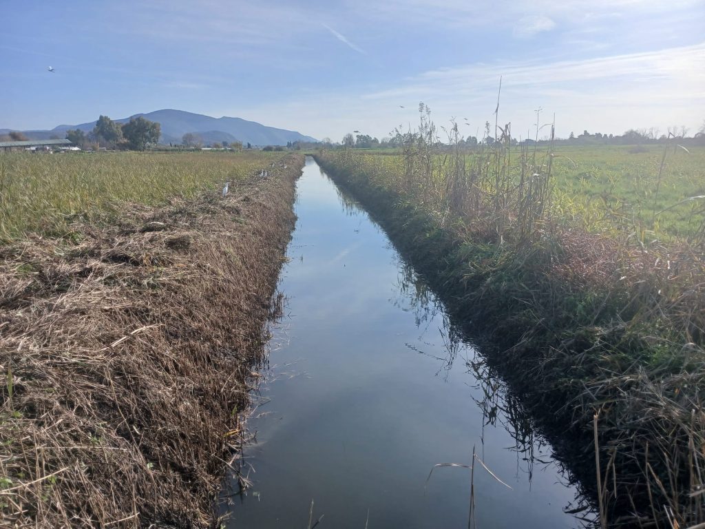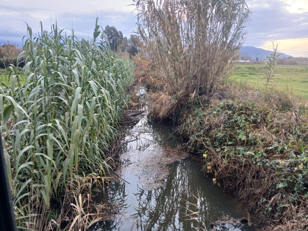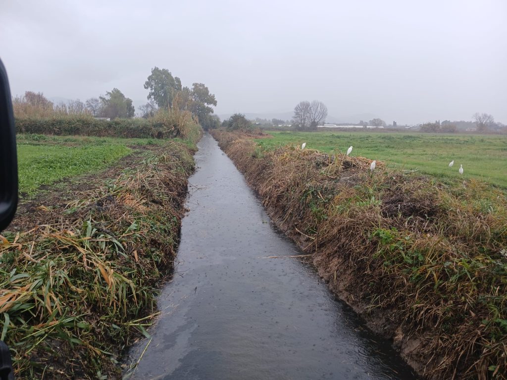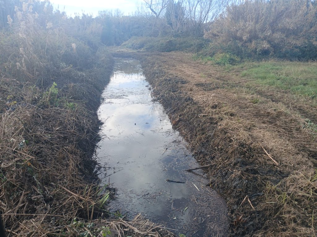 Eseguita l’attività di sfalcio della vegetazione con escavatore PC 80 sul collettore Streficci nel comune di Fondi (LT), in particolare: