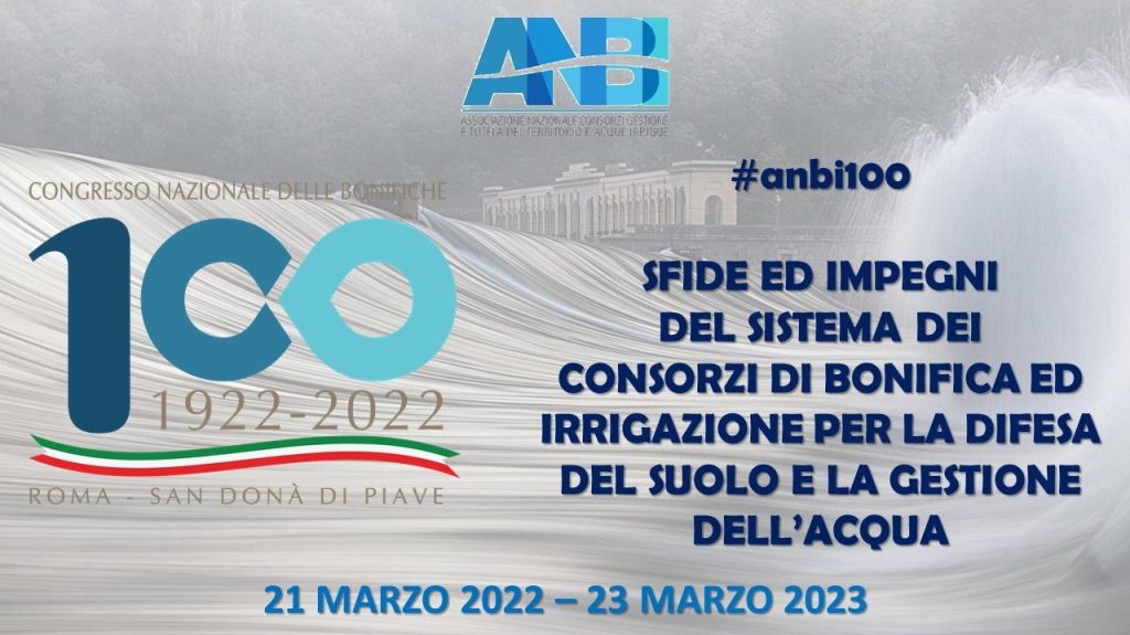 “C’è uno straordinario, quanto drammatico obbiettivo comune tra il primo dopoguerra e l’attuale contingenza internazionale: l’autosufficienza alimentare del nostro Paese che, allora come oggi, vede protagonista le gestione delle acque irrigue, operata dai Consorzi di bonifica”: ad evidenziarlo è Massimo Gargano, Direttore Generale di ANBI e co-autore del volume “La grande storia d’Italia raccontata dall’acqua” (con Elisabetta Novello ed Erasmo d’Angelis), presentato a Roma in occasione della Giornata Mondiale dell’Acqua e dell’avvio di “ANBI 100”, il programma di iniziative, che accompagneranno il centenario della moderna Bonifica, quando a San Donà di Piave, in provincia di Venezia, dal 23 al 25 marzo 1922 si riunirono esperti e studiosi da tutta Italia, nonché autorevoli esponenti politici come don Luigi Sturzo e Silvio Trentin, per precisare i nuovi obbiettivi di un’attività caratterizzante la storia della Penisola fin dagli Etruschi.