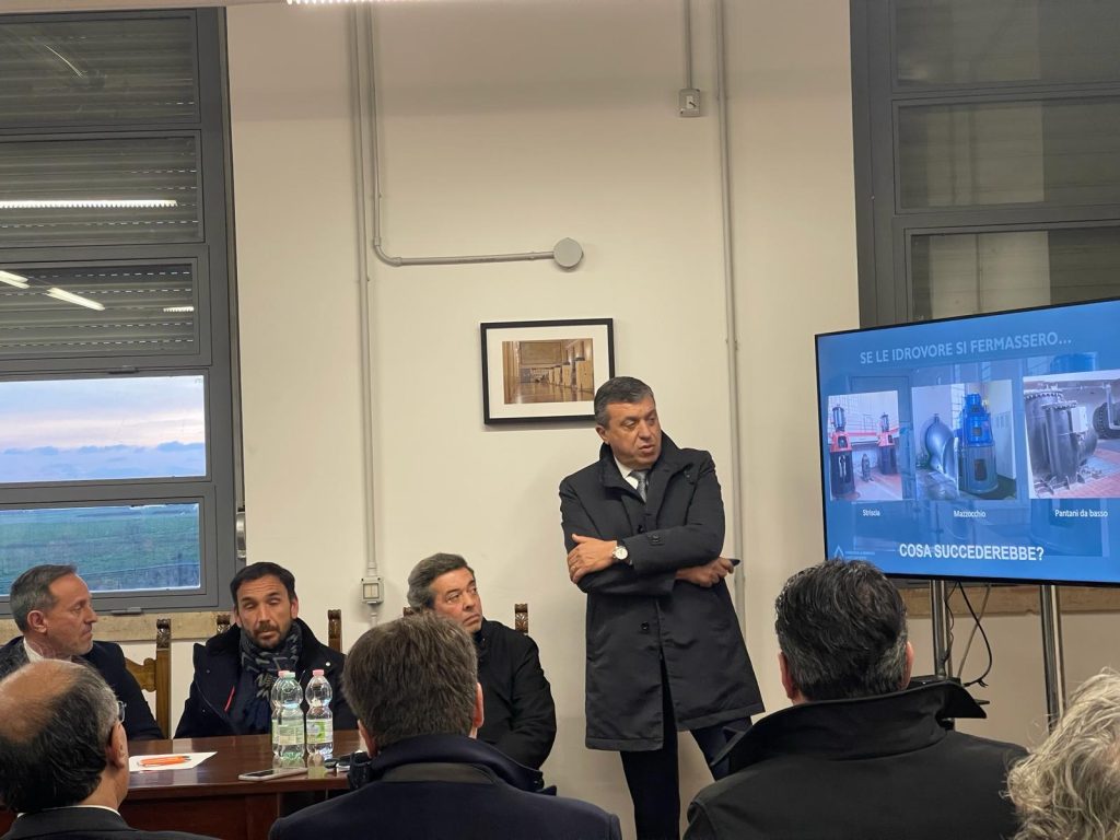 Pontinia 06.02.2024.  L’Assessore regionale all’agricoltura, Giancarlo Righini ed il presidente della commissione regionale Sviluppo economico hanno incontrato martedì scorso una rappresentanza del Consorzio di Bonifica Lazio Sud Ovest presso l’impianto idrovoro di Mazzocchio nel comune di Pontinia, uno dei più grandi idrovori d’Italia ed il più importante nel comprensorio di bonifica laziale.