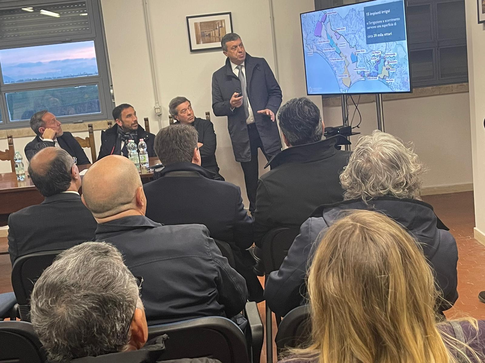 Accompagnato nella visita dal Presidente Lino Conti e dal Direttore Generale Natalino Corbo, l’assessore Righini, insieme al Consigliere regionale Enrico Tiero, ai Presidenti e Direttori delle Organizzazioni di Categoria Cia, Coldiretti e Confagricoltura  e ai vertici dell’ANBI Lazio Sonia Ricci e Andrea Renna, è stato accolto dal personale e dal consiglio di amministrazione del consorzio nella sala conferenze dell’impianto.