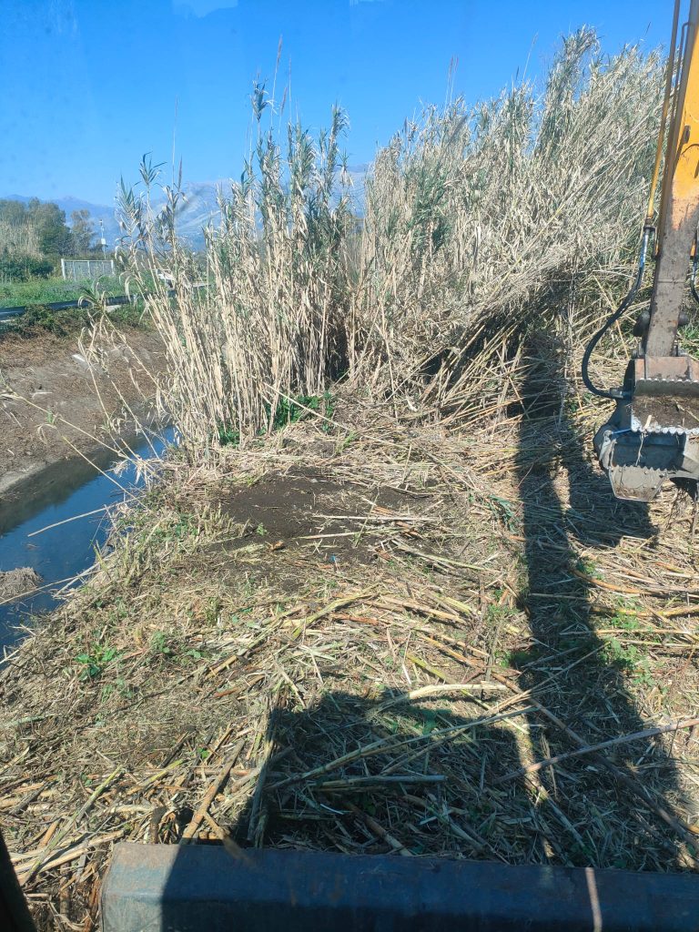 Eseguite le attività di trinciatura sulle sponde e sfalcio del fondo dell’alveo della vegetazione sul canale Circondariale Minturno,  nel comune di Minturno  (LT). L’attività è stata eseguita con escavatore cingolato.