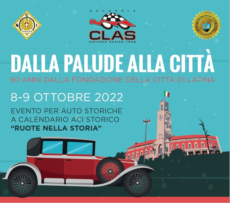 Nell’ambito dell’evento per auto storiche, a calendario ACI Storico, organizzato dalla Scuderia Clas, numerose auto d’epoca si incontreranno sabato 8 e domenica 9 ottobre in Agro Pontino per celebrare il novantesimo anniversario della fondazione della città di Latina.