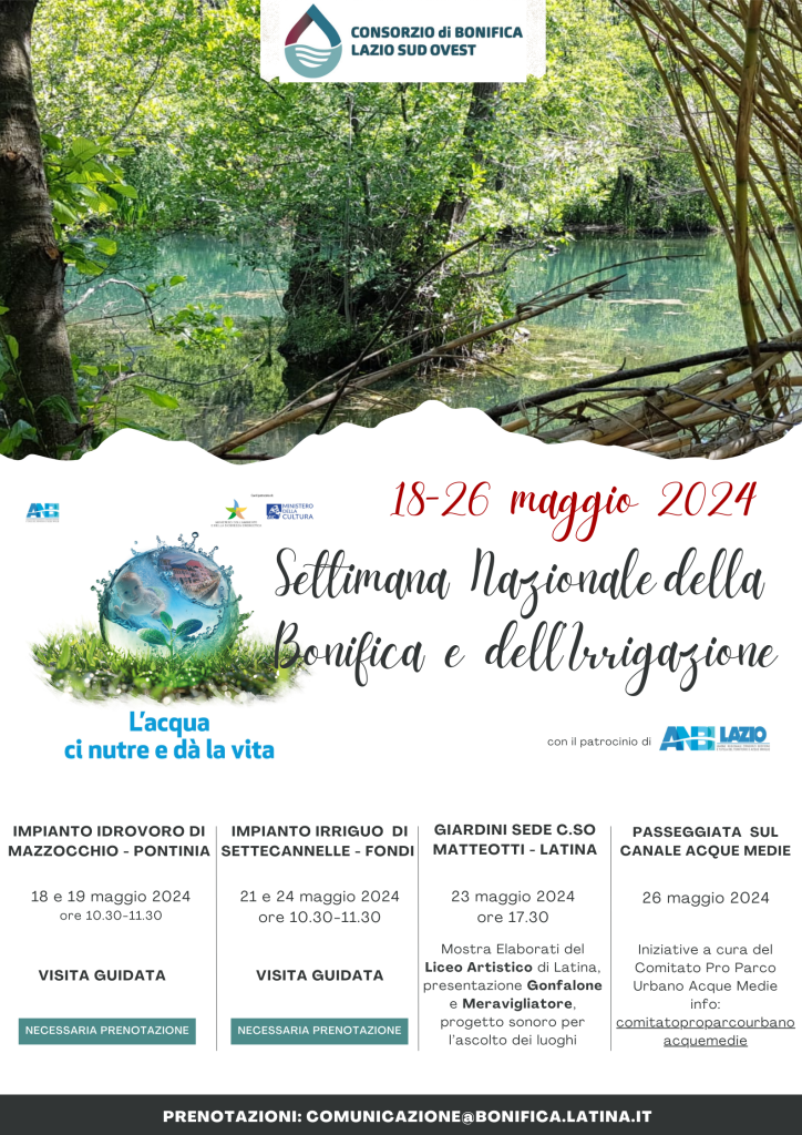 previa prenotazione all’indirizzo: comunicazione@bonifica.latina.it