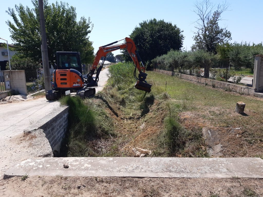 Eseguite le attività di trinciatura e di riescavo sul 3°Aff.te sx Canale Olevola – Via Lestra Mattoni nel comune di Terracina.
